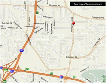 Take I-285 South to I-20 East. Take I-20 East to Wesley Chapel Rd. Make a left onto Wesley Chapel Rd. Go 1 mile. Turn left into the 'South Dekalb Business Park'. Proceed to building number 4256, Suite 300-B.